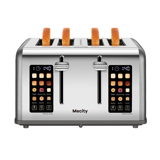 Mecity 4-Slice Touchscreen Toaster, Stainless Steel, Countdown Timer, 6 Browning & Shade Settings, 4 Wide Slots, Reheat/Cancel/Defrost Functions, Removable Crumb Tray, Gray
