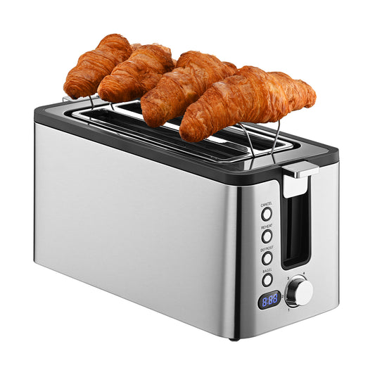 Mecity 4 Slice Long Slot Toaster with Countdown Timer, Bagel/Defrost/Reheat, Warming Rack, 6 Browning Levels, Metallic Grey