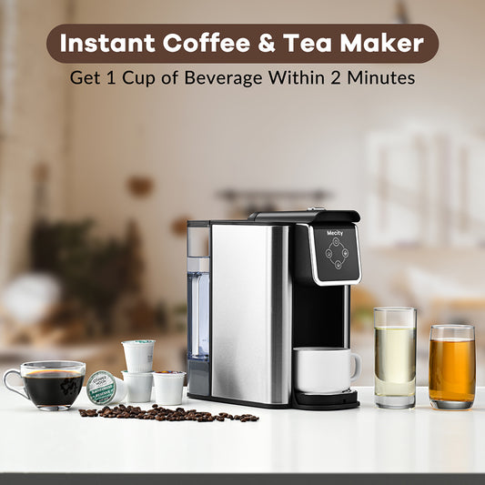 Mecity Coffee Maker 3 in 1 Single Serve Coffee Machine, Compatible with K cup Capsules, Instant Coffee Pot, Tea maker, 6,8,10 Oz Cup, Removable 50 Oz Water Reservoir, 120V 1150W,Metallic Grey