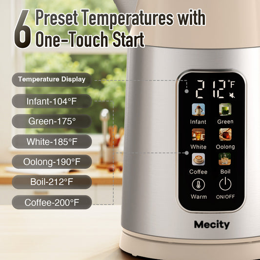 Mecity Electric Kettle 1.7L Touch Screen Temperature Control Water Boiler, No Plastic Contact with Water. 6 Presets For Tea and Coffee, 2 Hours Keep Warm, Auto Shut Off, Cream & Stainless Steel Color