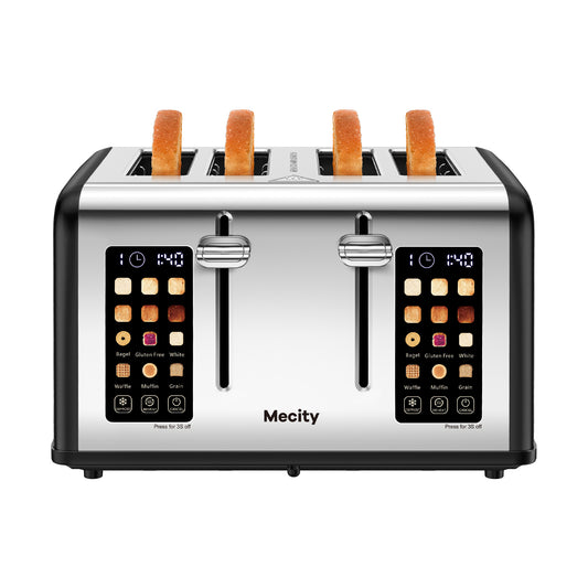 Mecity 4-Slice Touchscreen Toaster, Stainless Steel, Countdown Timer, 6 Browning & Shade Settings, 4 Wide Slots, Reheat/Cancel/Defrost Functions, Removable Crumb Tray, Gray