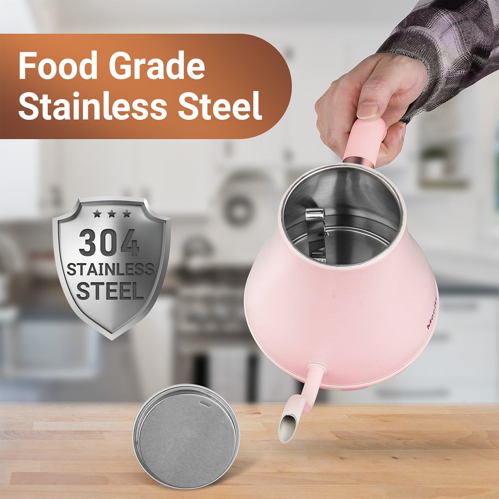 Mecity Electric Kettle Gooseneck Water Kettle Stainless Steel Coffee & Tea Kettle Water Boiler Fast Heating, Auto Shut Off, 0.8 L, 1000W, Pink