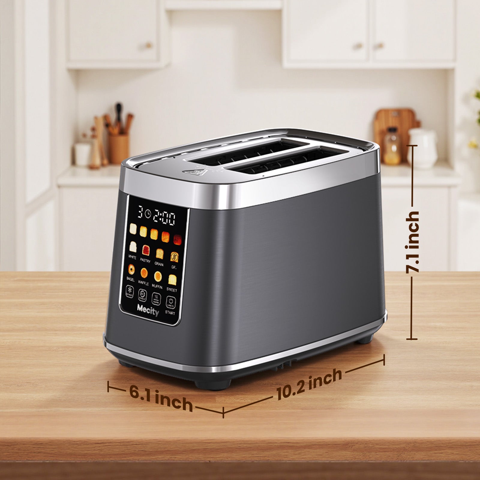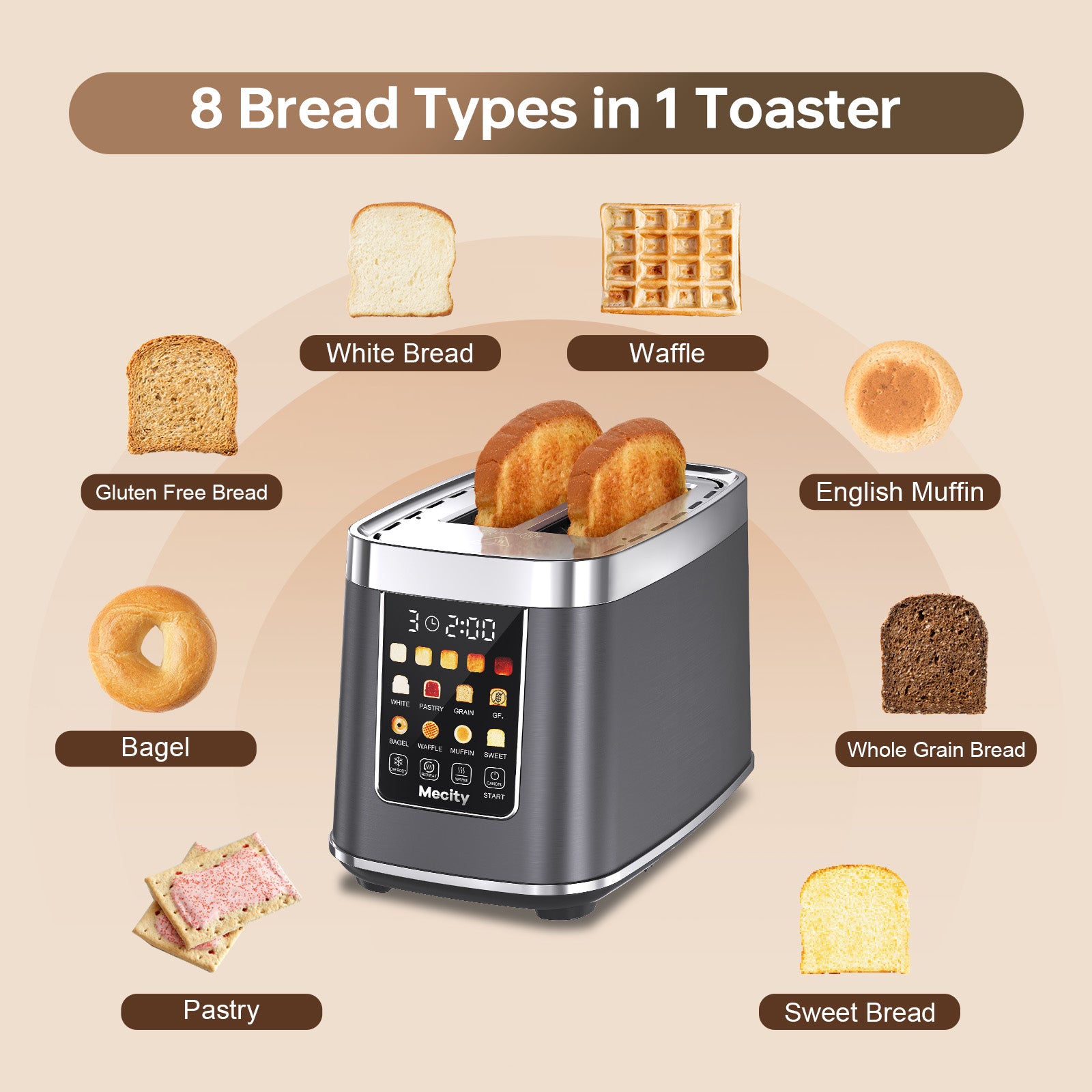 Mecity Touch Screen Toaster with Automatic Lift & Keep Warm – 2 Slice Smart Toaster, 5 Browning Levels, 8 Bread Programs, Luxury Stainless Steel Design, 1200W, Metallic Grey